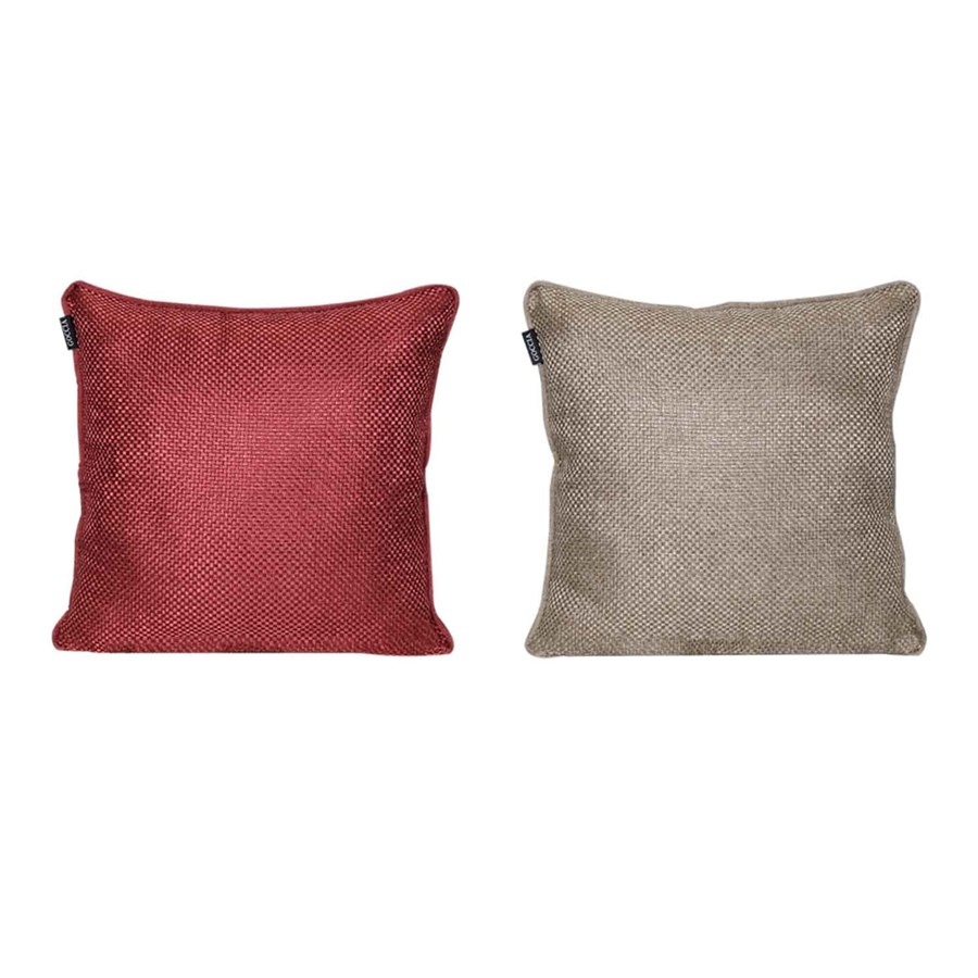 2'lı Hasır Dokulu Fitilli Çift Taraflı Kırlent Kılıfı Krem-Kırmızı (15970-216-209-2x40x40)