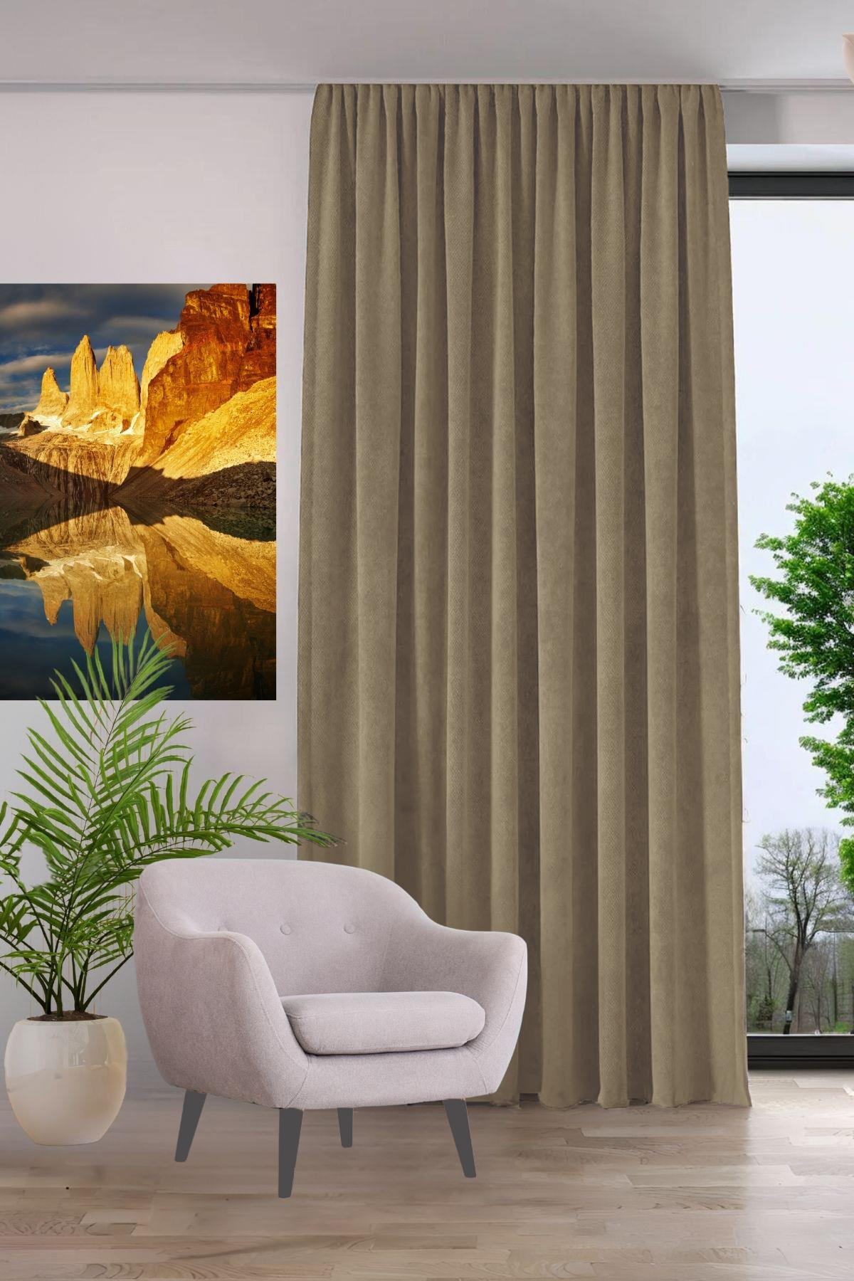 Kadife Dokulu Fon Perde Pilesiz Tek Kanat Bej