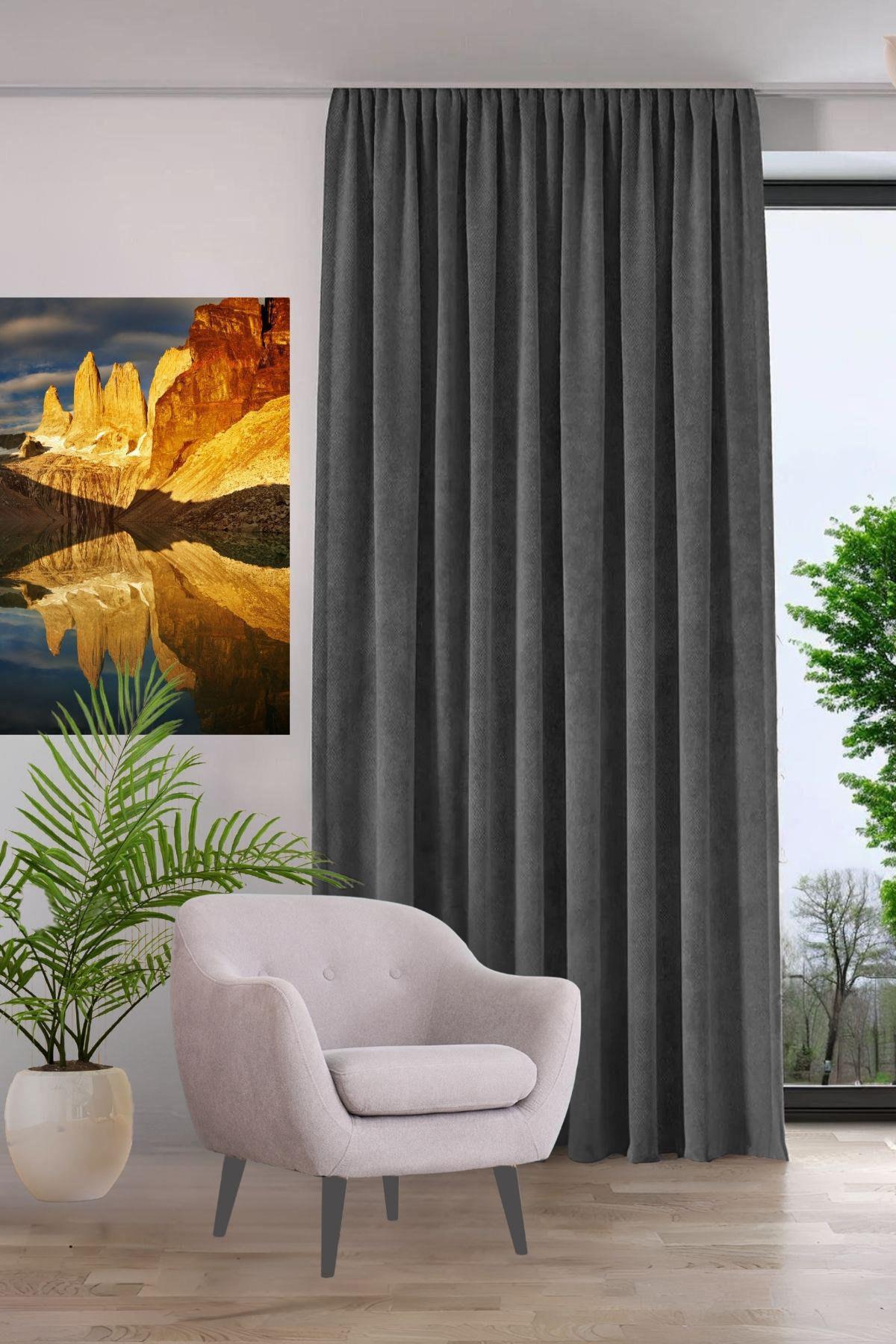 Kadife Dokulu Fon Perde Pilesiz Tek Kanat Gri