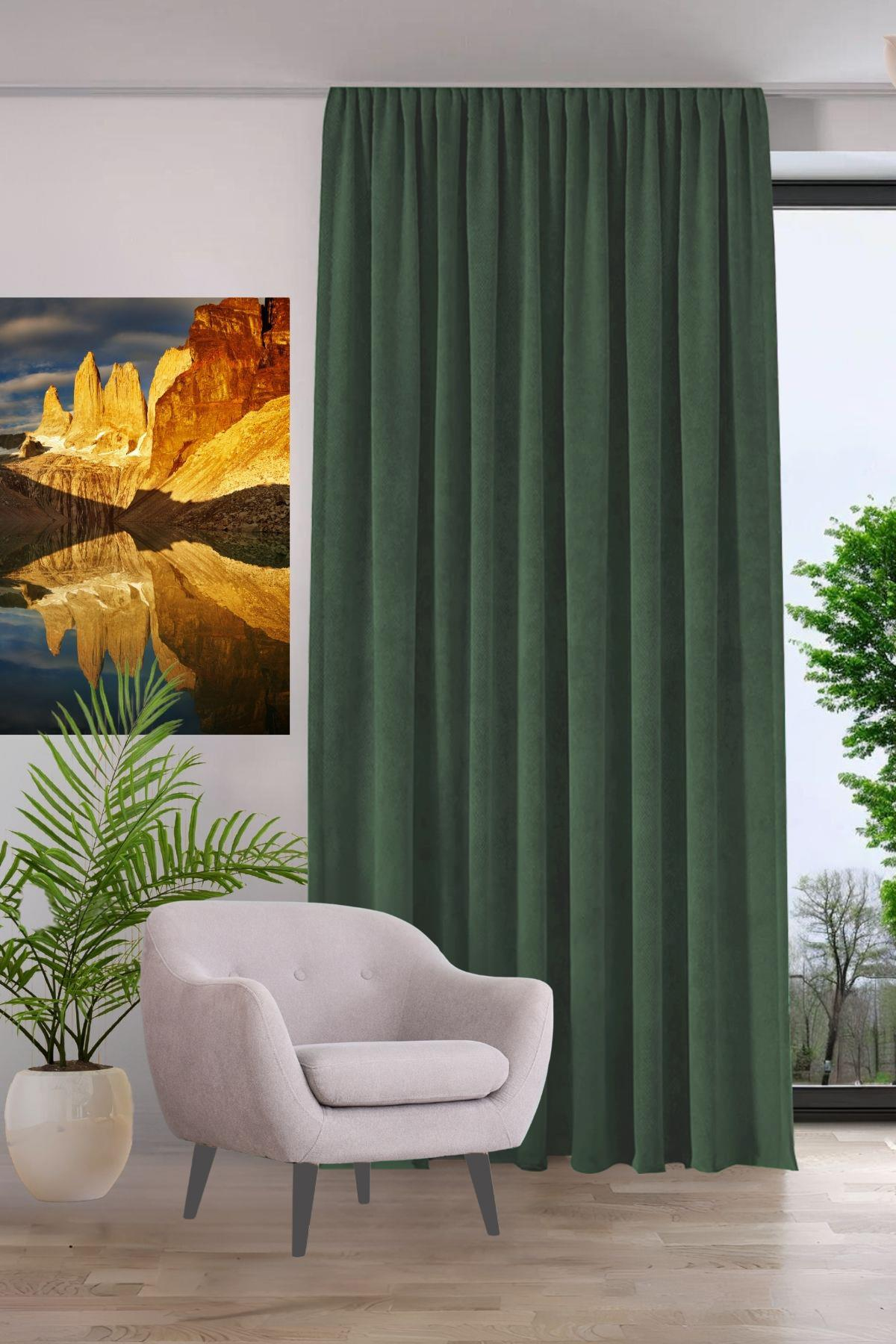 Kadife Dokulu Fon Perde Pilesiz Tek Kanat Yeşil