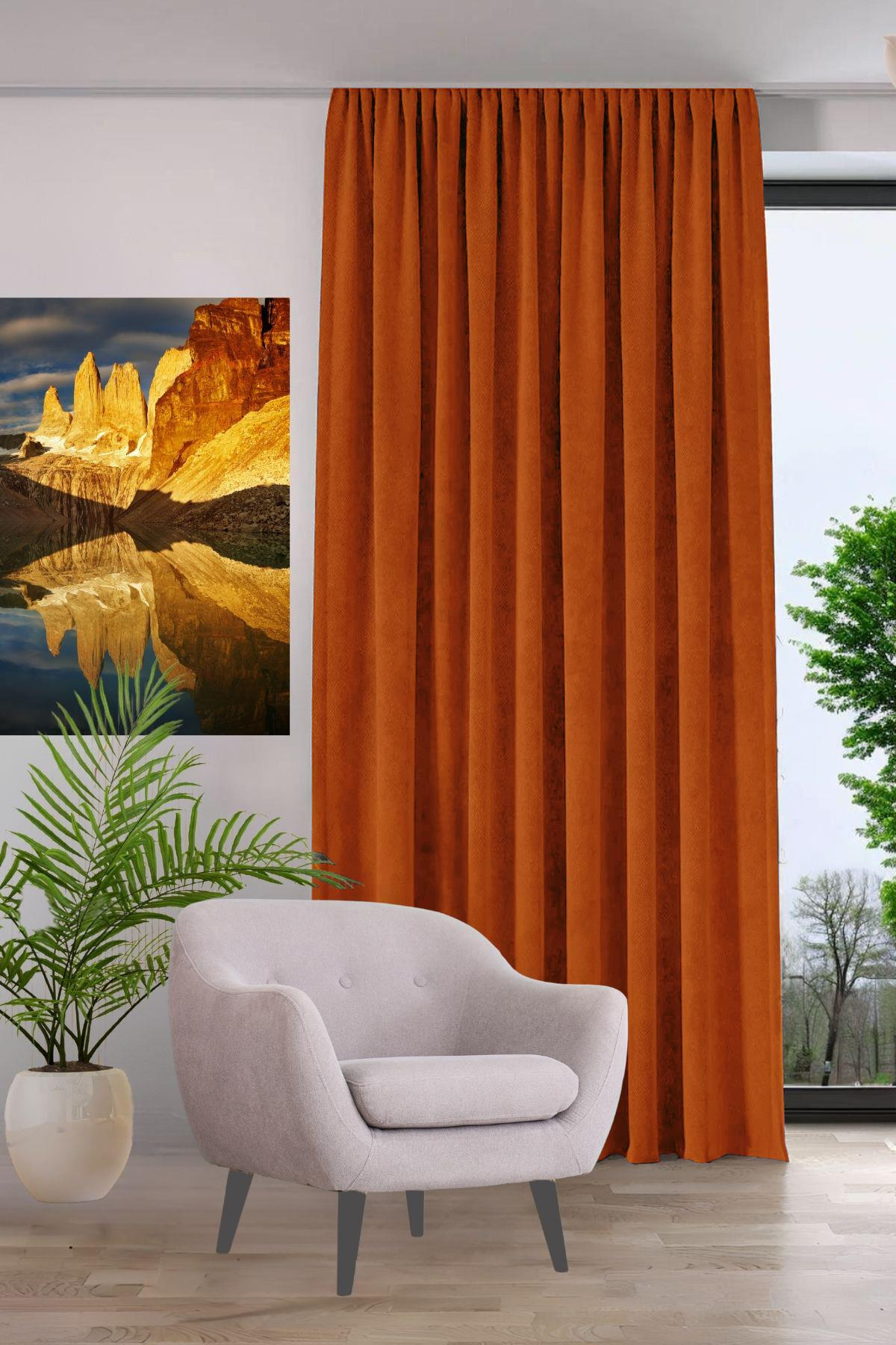 Fon Perde Özel Ölçüye Uygun Kadifemsi Pilesiz Bohem Salon Otel Oturma Çocuk Odası Tek Kanat Kiremit (KADİFE1)
