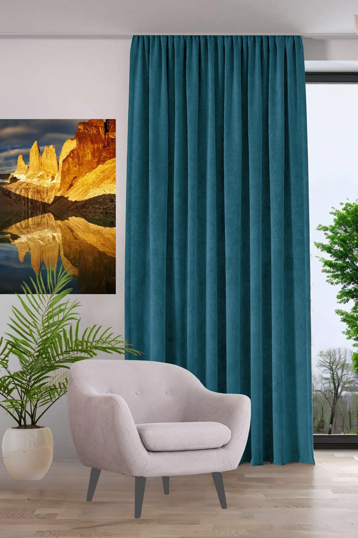 Kadife Dokulu Fon Perde Pilesiz Tek Kanat Mavi